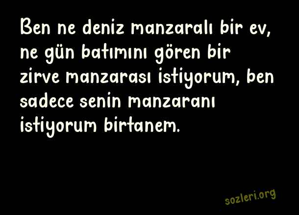 Ben ne deniz manzaralı bir ev, ne gün batımını gören bir zirve manzarası istiyorum, ben sadece senin manzaranı istiyorum birtanem. ( Manzara )