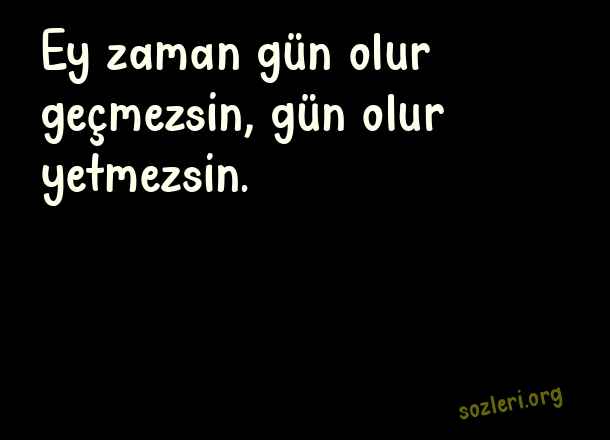 Ey zaman gün olur geçmezsin, gün olur yetmezsin. ( Zor Günler )
