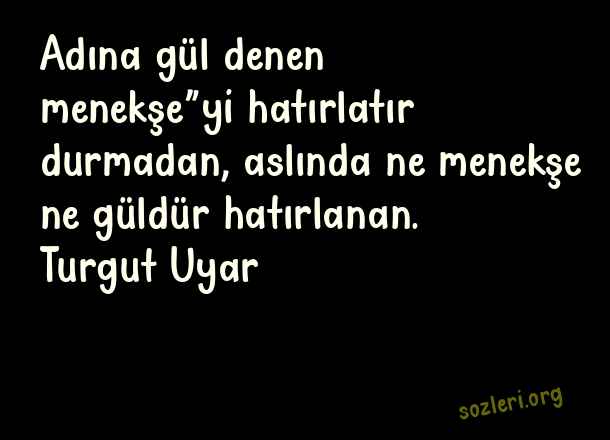 Adına gül denen menekşe”yi hatırlatır durmadan, aslında ne menekşe ne güldür hatırlanan. Turgut Uyar ( Menekşe )