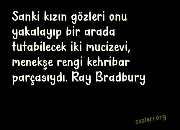 Sanki kızın gözleri onu yakalayıp bir arada tutabilecek iki mucizevi, menekşe rengi kehribar parçasıydı. Ray Bradbury ( Menekşe )