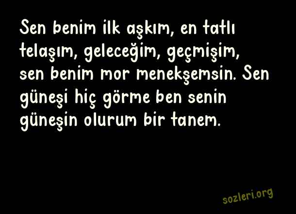 Sen benim ilk aşkım, en tatlı telaşım, geleceğim, geçmişim, sen benim mor menekşemsin. Sen güneşi hiç görme ben senin güneşin olurum bir tanem. ( Menekşe )