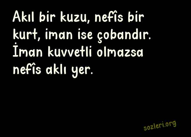 Akıl bir kuzu, nefîs bir kurt, iman ise çobandır. İman kuvvetli olmazsa nefîs aklı yer. ( Mevlana’dan Derin Sözler )