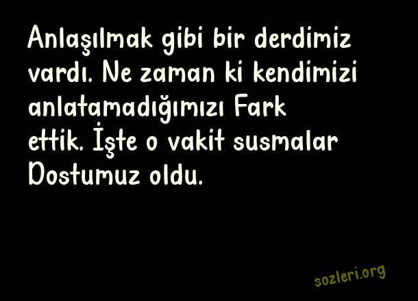 Anlaşılmak gibi bir derdimiz vardı. Ne zaman ki kendimizi anlatamadığımızı Fark ettik. İşte o vakit susmalar Dostumuz oldu. ( Mevlana’dan Derin Sözler )