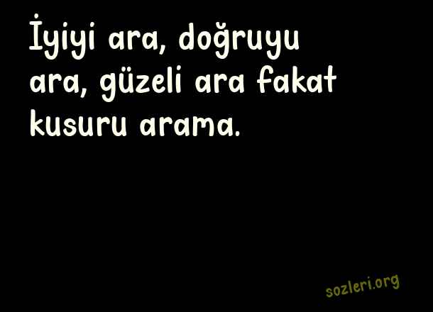 İyiyi ara, doğruyu ara, güzeli ara fakat kusuru arama. ( Mevlana’dan Derin Sözler )