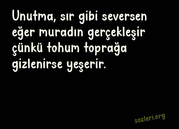 Unutma, sır gibi seversen eğer muradın gerçekleşir çünkü tohum toprağa gizlenirse yeşerir. ( Mevlana’dan Derin Sözler )