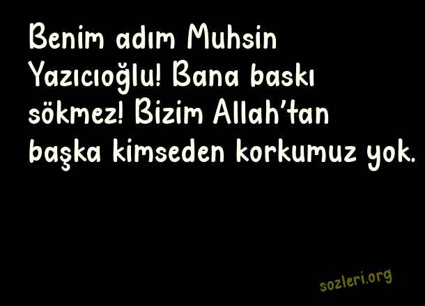 Benim adım Muhsin Yazıcıoğlu! Bana baskı sökmez! Bizim Allah’tan başka kimseden korkumuz yok. ( Muhsin Yazıcıoğlu )