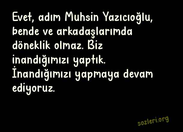 Evet, adım Muhsin Yazıcıoğlu, bende ve arkadaşlarımda döneklik olmaz. Biz inandığımızı yaptık. İnandığımızı yapmaya devam ediyoruz. ( Muhsin Yazıcıoğlu )