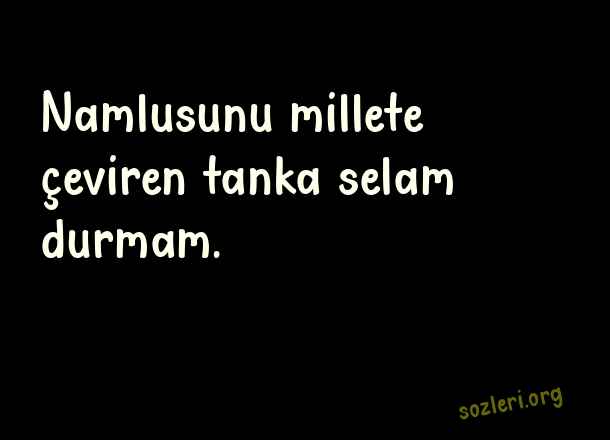 Namlusunu millete çeviren tanka selam durmam. ( Muhsin Yazıcıoğlu )