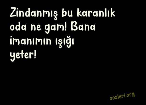 Zindanmış bu karanlık - Muhsin Yazıcıoğlu Sözleri .. Zindanmış bu karanlık oda ne gam! Bana imanımın ışığı yeter! ( Muhsin Yazıcıoğlu )
