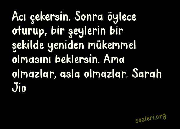 Acı çekersin. Sonra öylece oturup, bir şeylerin bir şekilde yeniden mükemmel olmasını beklersin. Ama olmazlar, asla olmazlar. Sarah Jio ( Mükemmellik )