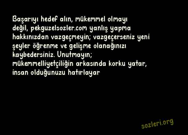 Başarıyı hedef alın, mükemmel olmayı değil, yanlış yapma hakkınızdan vazgeçmeyin; vazgeçerseniz yeni şeyler öğrenme ve gelişme olanağınızı kaybedersiniz. Unutmayın; mükemmelliyetçiliğin arkasında korku yatar, insan olduğunuzu hatırlayar ( Mükemmellik )