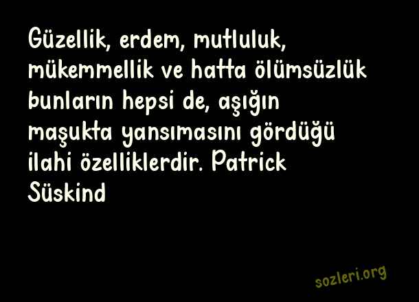 Güzellik, erdem, mutluluk, mükemmellik ve hatta ölümsüzlük bunların hepsi de, aşığın maşukta yansımasını gördüğü ilahi özelliklerdir. Patrick Süskind ( Mükemmellik )