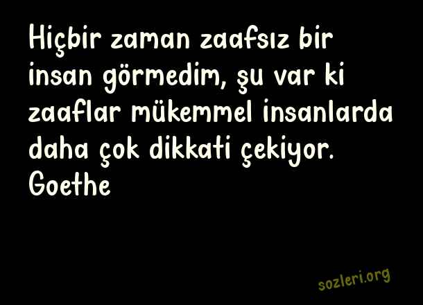 Hiçbir zaman zaafsız bir insan görmedim, şu var ki zaaflar mükemmel insanlarda daha çok dikkati çekiyor. Goethe ( Mükemmellik )