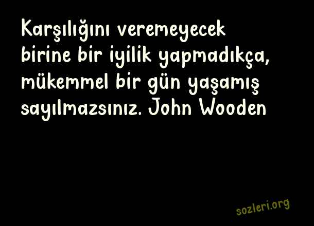 Karşılığını veremeyecek birine bir iyilik yapmadıkça, mükemmel bir gün yaşamış sayılmazsınız. John Wooden ( Mükemmellik )