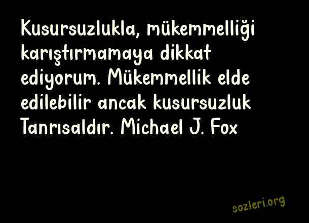 Kusursuzlukla, mükemmelliği karıştırmamaya dikkat ediyorum. Mükemmellik elde edilebilir ancak kusursuzluk Tanrısaldır. Michael J. Fox ( Mükemmellik )