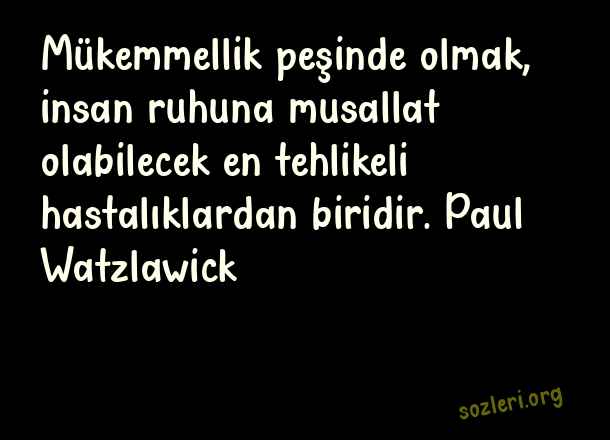 Mükemmellik peşinde olmak, insan ruhuna musallat olabilecek en tehlikeli hastalıklardan biridir. Paul Watzlawick ( Mükemmellik )