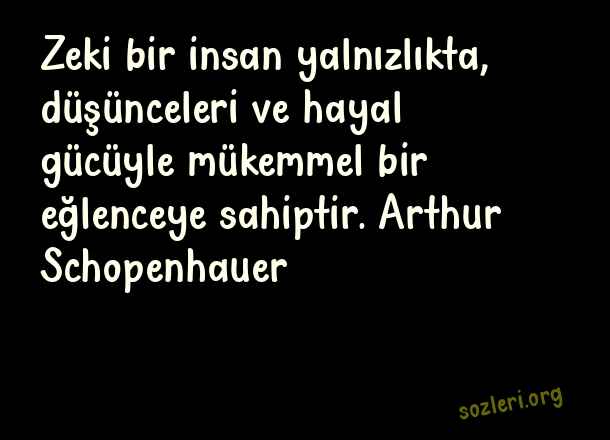 Zeki bir insan yalnızlıkta, düşünceleri ve hayal gücüyle mükemmel bir eğlenceye sahiptir. Arthur Schopenhauer ( Mükemmellik )