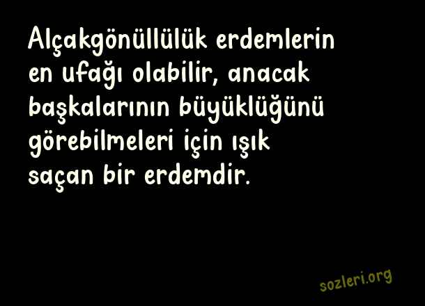 Alçakgönüllülük erdemlerin en ufağı olabilir, anacak başkalarının büyüklüğünü görebilmeleri için ışık saçan bir erdemdir. ( Mütevazi Sözler )