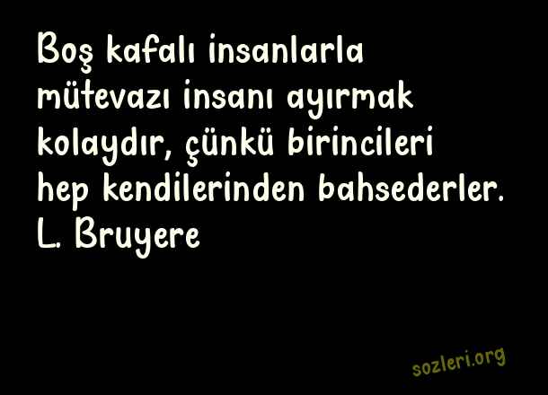 Boş kafalı insanlarla mütevazı insanı ayırmak kolaydır, çünkü birincileri hep kendilerinden bahsederler. L. Bruyere ( Mütevazi Sözler )