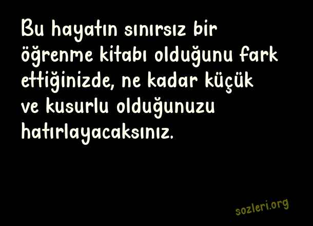 Bu hayatın sınırsız bir öğrenme kitabı olduğunu fark ettiğinizde, ne kadar küçük ve kusurlu olduğunuzu hatırlayacaksınız. ( Mütevazi Sözler )