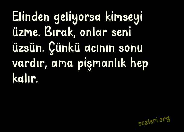 Elinden geliyorsa kimseyi üzme. Bırak, onlar seni üzsün. Çünkü acının sonu vardır, ama pişmanlık hep kalır. ( Mütevazi Sözler )