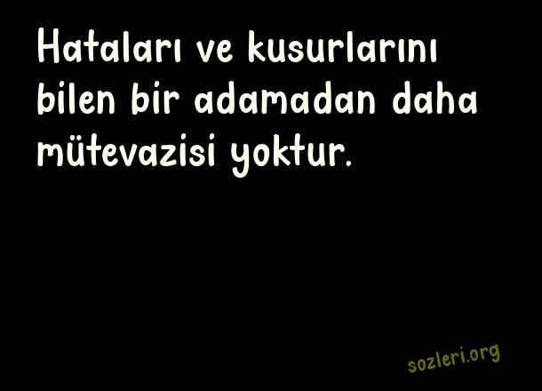 Hataları ve kusurlarını bilen bir adamadan daha mütevazisi yoktur. ( Mütevazi Sözler )