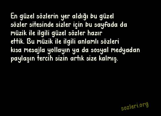 En güzel sözlerin yer aldığı bu güzel sözler sitesinde sizler için bu sayfada da müzik ile ilgili güzel sözler hazır ettik. Bu müzik ile ilgili anlamlı sözleri kısa mesajla yollayın ya da sosyal medyadan paylaşın tercih sizin artık size kalmış. ( Müzik )