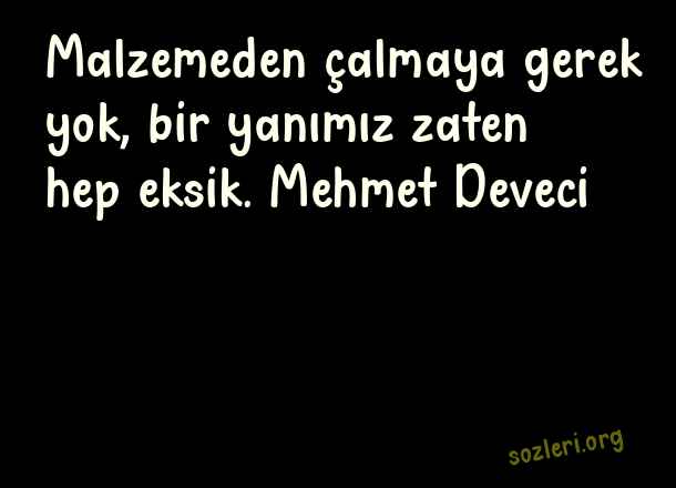 Malzemeden çalmaya gerek yok, bir yanımız zaten hep eksik. Mehmet Deveci ( Naif Sözler )