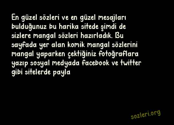En güzel sözleri ve en güzel mesajları bulduğunuz bu harika sitede şimdi de sizlere mangal sözleri hazırladık. Bu sayfada yer alan komik mangal sözlerini mangal yaparken çektiğiniz fotoğraflara yazıp sosyal medyada facebook ve twitter gibi sitelerde payla ( Mangal )