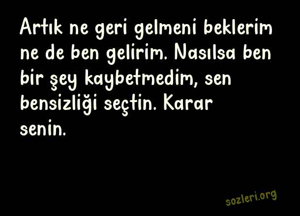 Artık ne geri gelmeni beklerim ne de ben gelirim. Nasılsa ben bir şey kaybetmedim, sen bensizliği seçtin. Karar senin. ( Nazım Hikmet )