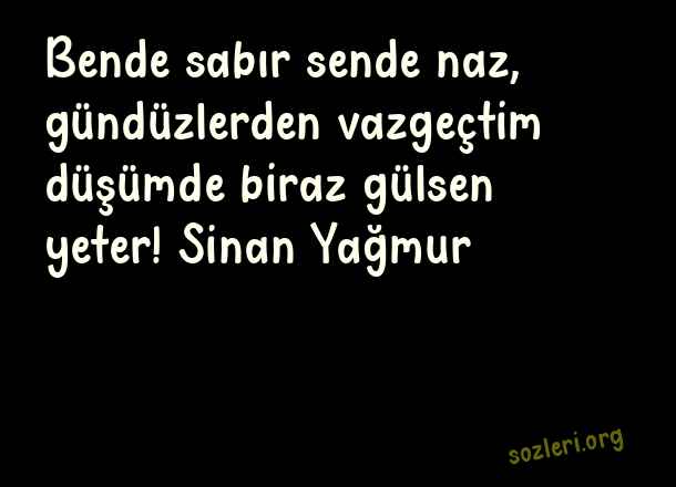 Bende sabır sende naz, gündüzlerden vazgeçtim düşümde biraz gülsen yeter! Sinan Yağmur ( Naz )