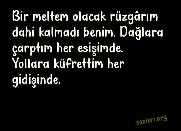 Bir meltem olacak rüzgârım dahi kalmadı benim. Dağlara çarptım her esişimde. Yollara küfrettim her gidişinde. ( Nazım Hikmet )