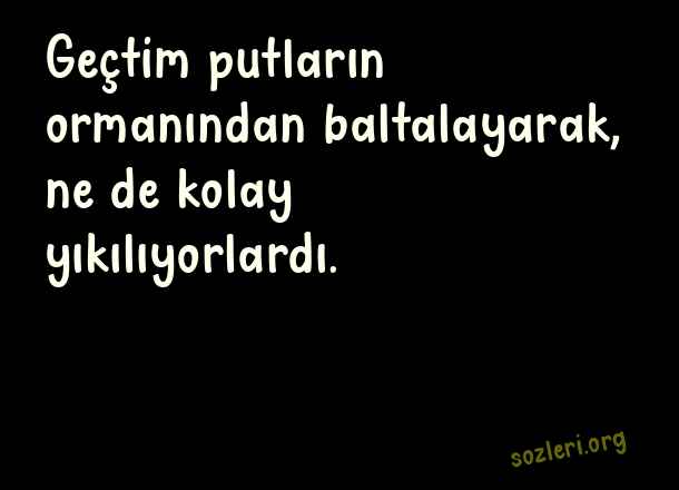 Geçtim putların ormanından baltalayarak, ne de kolay yıkılıyorlardı. ( Nazım Hikmet )