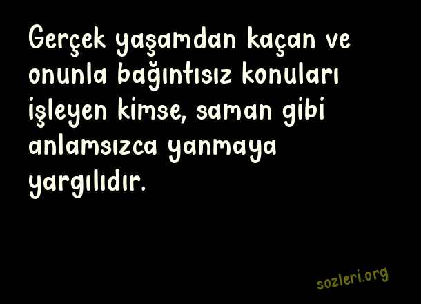 Gerçek yaşamdan kaçan ve onunla bağıntısız konuları işleyen kimse, saman gibi anlamsızca yanmaya yargılıdır. ( Nazım Hikmet )