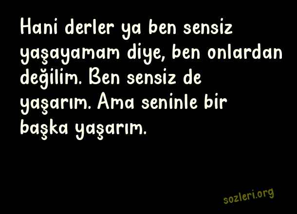 Hani derler ya ben sensiz yaşayamam diye, ben onlardan değilim. Ben sensiz de yaşarım. Ama seninle bir başka yaşarım. ( Nazım Hikmet )