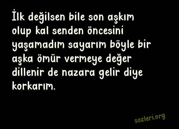 İlk değilsen bile son aşkım olup kal senden öncesini yaşamadım sayarım böyle bir aşka ömür vermeye değer dillenir de nazara gelir diye korkarım. ( Nazar )