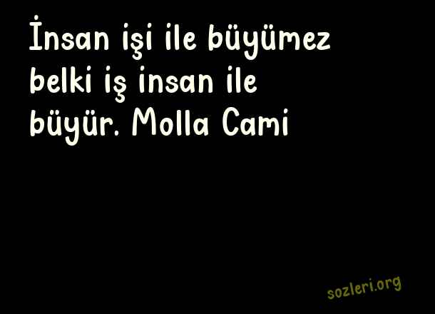 İnsan işi ile büyümez belki iş insan ile büyür. Molla Cami ( Kurnaz Sözler )