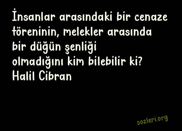 İnsanlar arasındaki bir cenaze töreninin, melekler arasında bir düğün şenliği olmadığını kim bilebilir ki? Halil Cibran ( Cenaze )