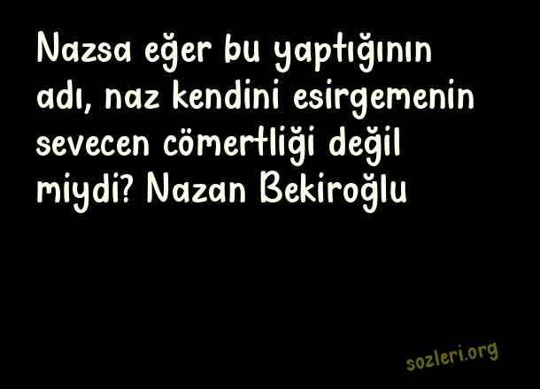 Nazsa eğer bu yaptığının adı, naz kendini esirgemenin sevecen cömertliği değil miydi? Nazan Bekiroğlu ( Naz )