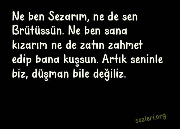 Ne ben Sezarım, ne de sen Brütüssün. Ne ben sana kızarım ne de zatın zahmet edip bana kuşsun. Artık seninle biz, düşman bile değiliz. ( Nazım Hikmet )