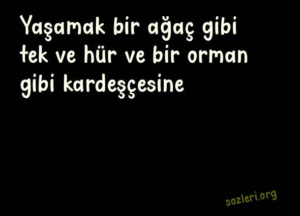 Yaşamak bir ağaç gibi tek ve hür ve bir orman gibi kardeşçesine… ( Nazım Hikmet )