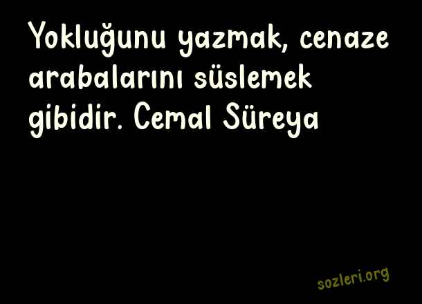 Yokluğunu yazmak, cenaze arabalarını süslemek gibidir. Cemal Süreya ( Cenaze )