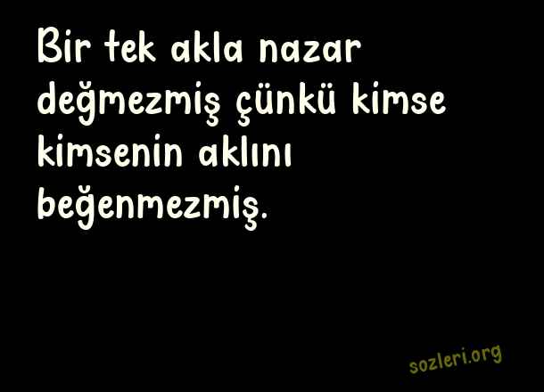 Bir tek akla - Nazar İle İlgili Sözler .. Bir tek akla nazar değmezmiş çünkü kimse kimsenin aklını beğenmezmiş. ( Nazar )