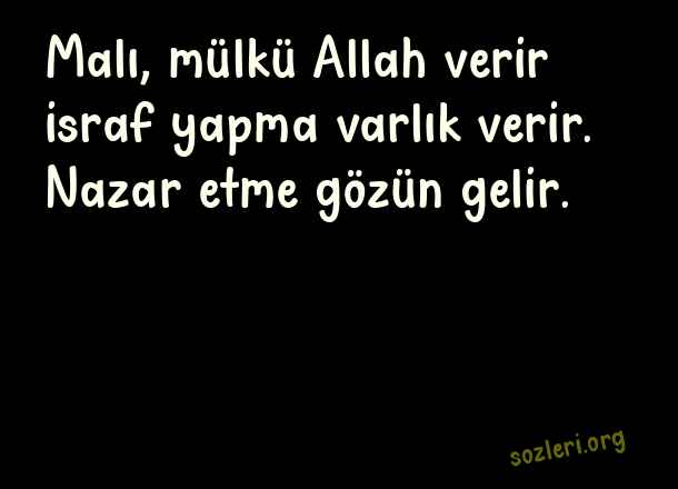 Malı, mülkü Allah verir israf yapma varlık verir. Nazar etme gözün gelir. ( Nazar )