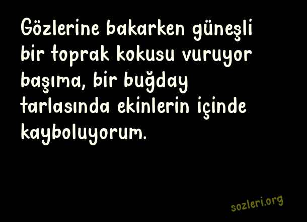 Gözlerine bakarken güneşli bir toprak kokusu vuruyor başıma, bir buğday tarlasında ekinlerin içinde kayboluyorum. ( Nazım Hikmet Aşk )