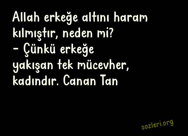 Allah erkeğe altını haram kılmıştır, neden mi? – Çünkü erkeğe yakışan tek mücevher, kadındır. Canan Tan ( Neden )