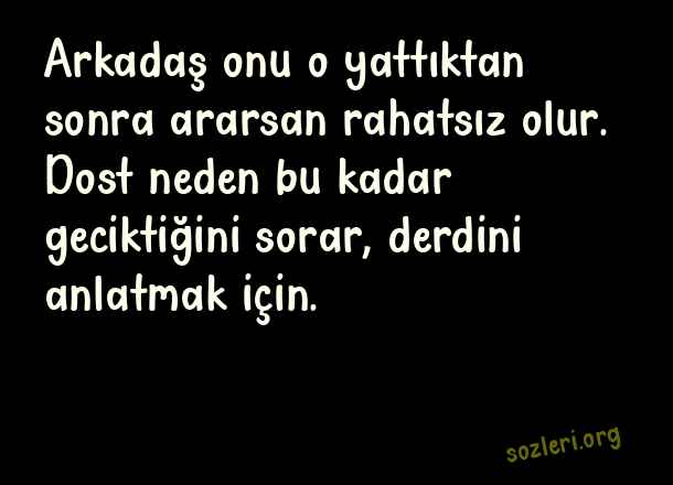 Arkadaş onu o yattıktan sonra ararsan rahatsız olur. Dost neden bu kadar geciktiğini sorar, derdini anlatmak için. ( Neden )