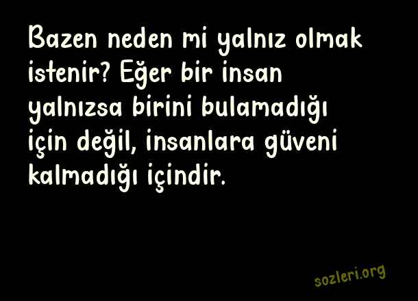 Bazen neden mi yalnız olmak istenir? Eğer bir insan yalnızsa birini bulamadığı için değil, insanlara güveni kalmadığı içindir. ( Neden )