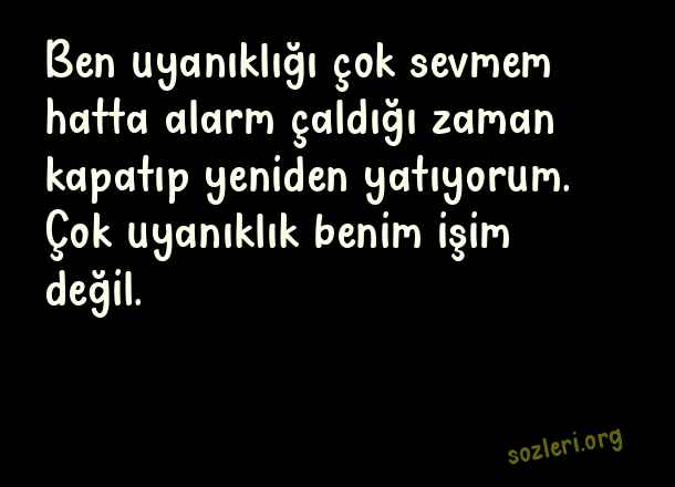 Ben uyanıklığı çok sevmem hatta alarm çaldığı zaman kapatıp yeniden yatıyorum. Çok uyanıklık benim işim değil. ( Kendini Uyanık Zannedenlere Sözler )