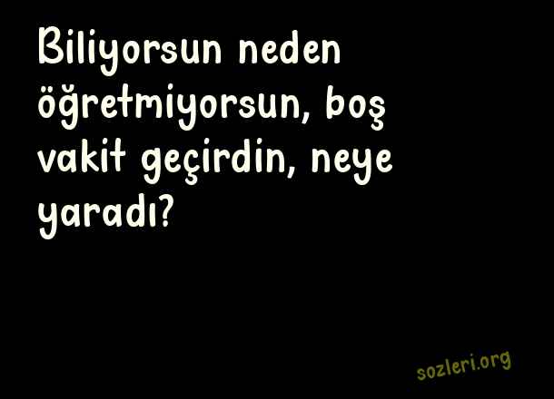 Biliyorsun neden öğretmiyorsun, boş vakit geçirdin, neye yaradı? ( Neden )